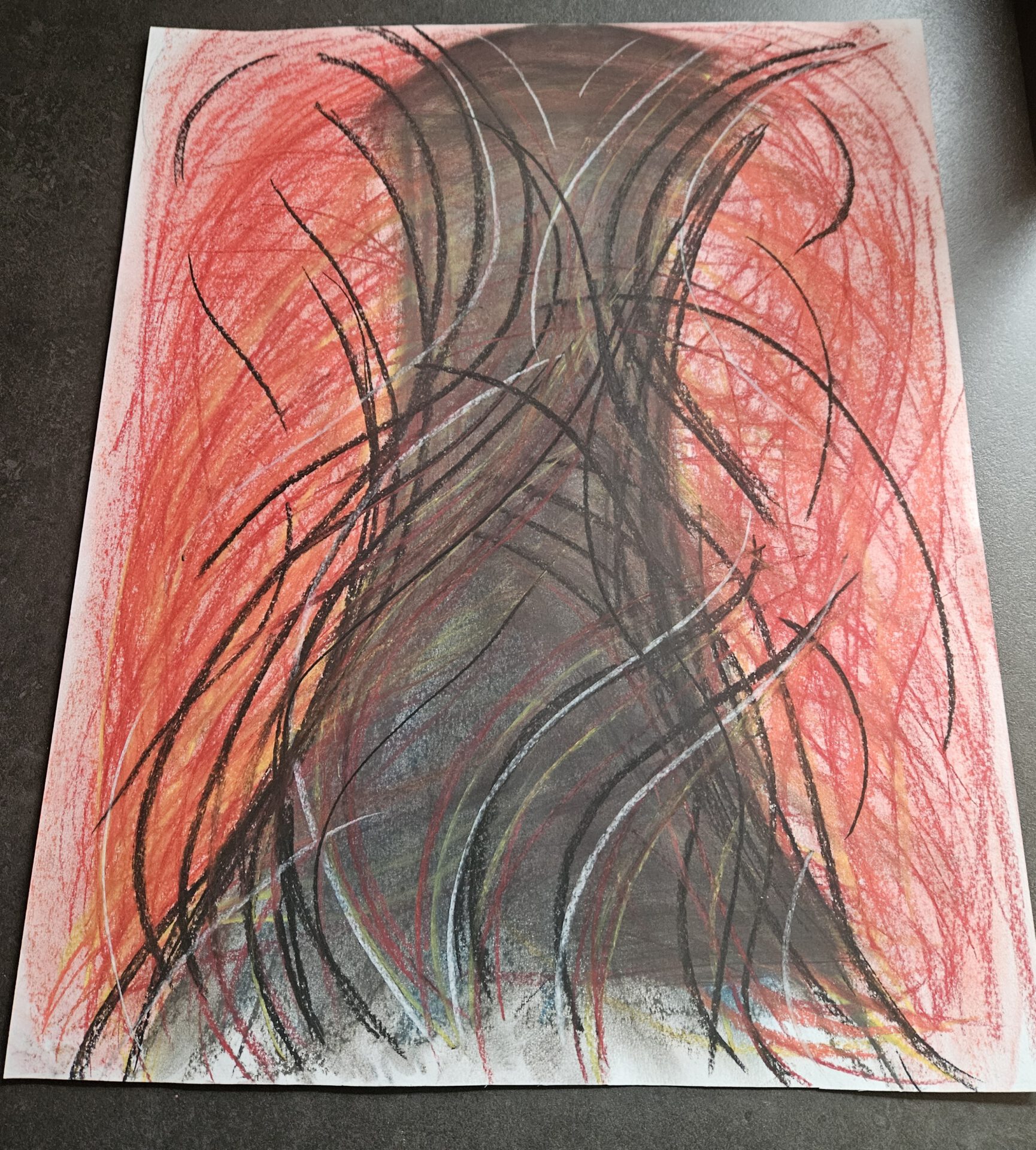 Ik ben intuïtief gaan tekenen met pastelkrijtjes, gewoon door mijn gevoel te volgen. Elke kleur staat voor een andere emotie, en zo ontstonden er beelden recht uit mijn hart. Op die manier groeide er een galerij vol kunstwerken die voor iedereen iets anders kunnen betekenen – jij mag er zelf in zien wat jij voelt.